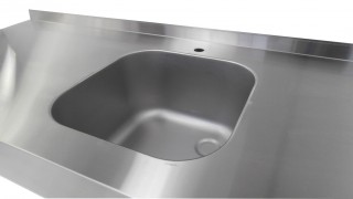 Работна маca, крайстенна (със заден борд), без долен плот, с един или повече умивални басейни. Поддържаме на склад поне 16 различни размера корита. Разположението им, както и наличието или не на отвор за монтаж на батерия на плота, са изцяло според желанията на клиента.